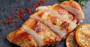 Cook boneless, skinless chicken breasts (since they contain less fat and more protein). “It’s really common when cooking at high heat without much in the way of liquid or fat, like if you’re baking plain, boneless, skinless chicken breasts,” Curlett said.