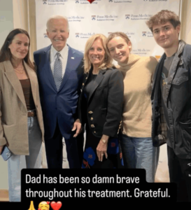 Another photo showed Biden standing with his family, which Ashley captioned: “Dad has been so damn brave throughout his treatment. Grateful.”