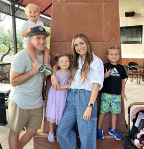 Amanda posted the pictures with a text, reading, “When your mom/mother-in-law makes you take professional family pictures 3 times a year…”