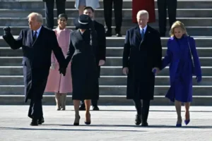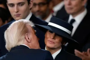 The inauguration day brought lighthearted moments, including a playful air kiss between Donald and Melania, as the wide-brimmed hat made a traditional kiss impractical. These glimpses of humanity juxtaposed with Melania’s composed exterior highlighted her ability to navigate the scrutiny of public life with grace.