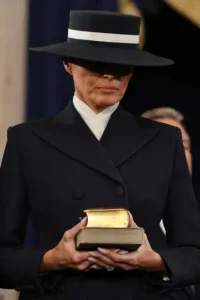 The release of the portrait followed discussions about Melania’s inauguration outfit, which had similarly divided public opinion. At President Donald Trump’s second inauguration on January 20, 2025, Melania wore a dark navy double-breasted coat with sharp lapels, paired with black gloves and a wide-brimmed boater hat. While some lauded the ensemble as elegant and polished, others criticized it as austere, comparing it to funeral attire. The dramatic hat became a focal point, with some questioning its size and purpose while others admired its boldness.