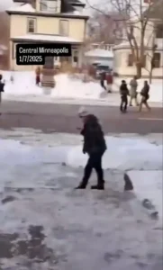 Residents had already noticed heavy federal activity near the elementary school and along nearby streets. Multiple SUVs were parked across the roadway, drawing attention and concern. Some neighbors began filming, others shouted at officers to leave the area.