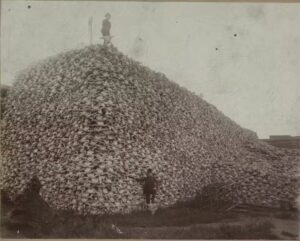 At the start of the 19th century, North America was home to 30 to 60 million bison. By the time this photo was taken, that number had plummeted to a staggering low of just 456 wild bison. The westward expansion of settlers, coupled with market demand for bison hides and bones, fueled a brutal slaughter that decimated the once-thriving herds. Between 1850 and the late 1870s, most herds were wiped out, leaving behind both environmental and cultural devastation.